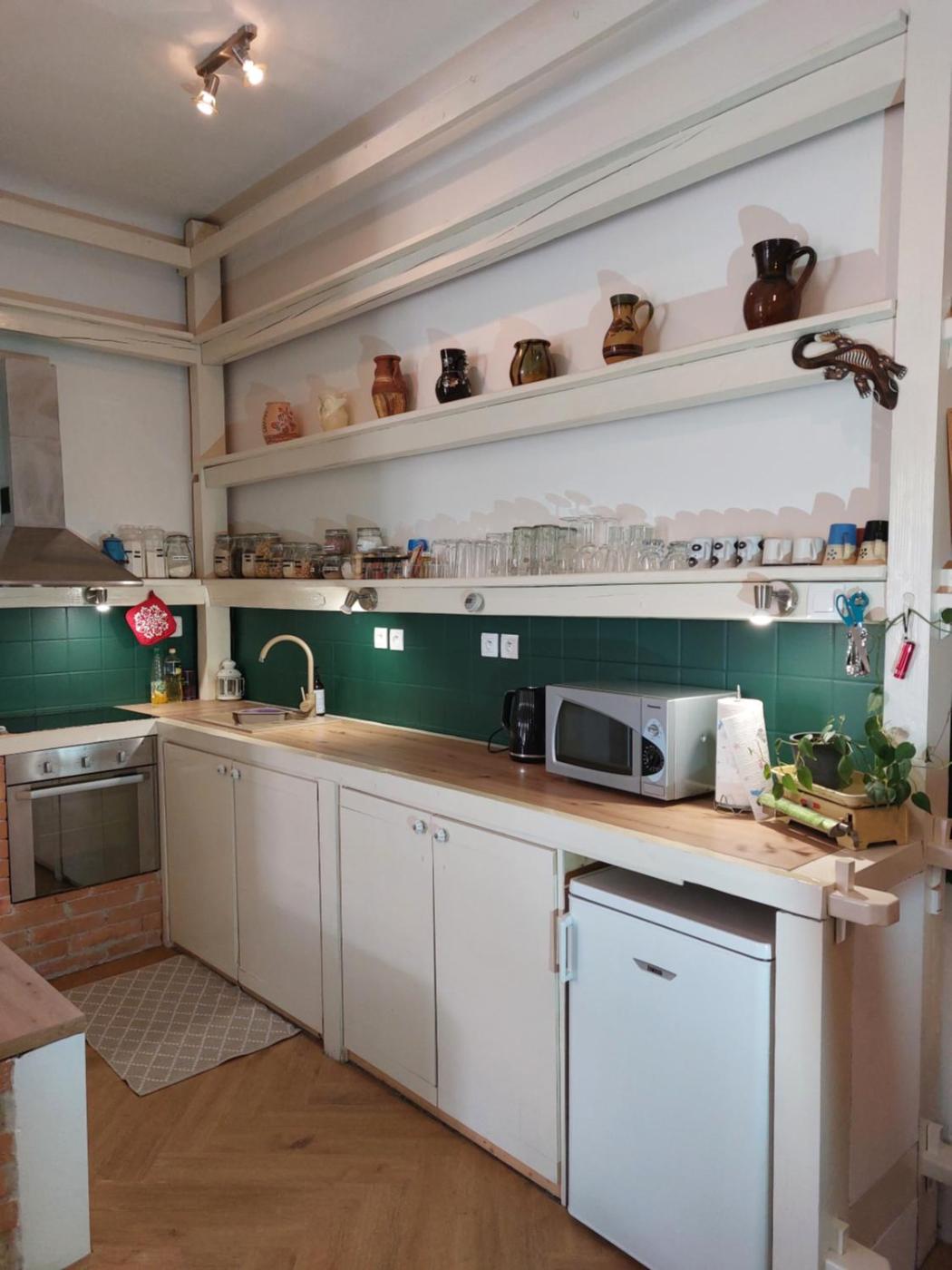 One-Bedroom Apartment. This apartment features a fireplace. This apartment features 1 living room, 1 separate bedroom and 1 bathroom with a shower and free toiletries. Guests can make meals in the kitchen that has a stovetop, a refrigerator, kitchenware and an oven. The apartment features a washing machine, a tea and coffee maker, a dining area, a flat-screen TV, as well as city views. The unit has 2 beds.