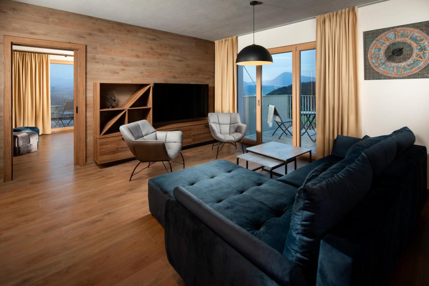 Two-Bedroom Apartment. Guests can make meals in the kitchen that is equipped with a stovetop, a refrigerator, a dishwasher and kitchenware. The spacious apartment provides a dining area, an electric kettle, heating, a flat-screen TV, as well as mountain views. The unit offers 3 beds.