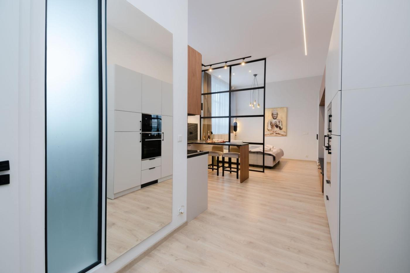 One-Bedroom Apartment. This apartments standout feature is the private pool. The apartment has 1 bedroom and 1 bathroom with a shower and free toiletries. In the kitchen, guests will find a stovetop, a refrigerator, kitchenware and an oven. The apartment offers a washing machine, a tea and coffee maker, a wardrobe, a sofa and a flat-screen TV. The unit has 1 bed.